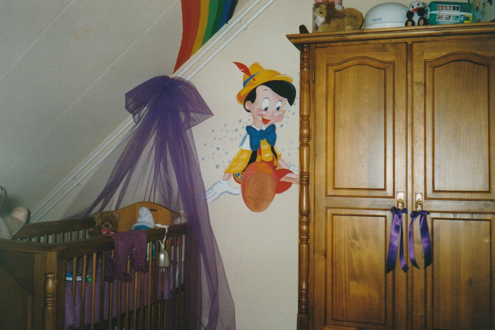Tinkelbell stands on his foot, but is stuck behind the cupboard